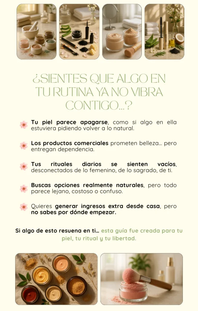 Lo único que te pedimos es que te regales el momento de abrir la guía, sentir su inspiración y dejar que la magia de lo natural transforme tu piel, tu belleza y tu energía.